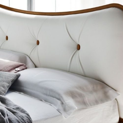 Le lit Armonia se caractérise par la tête de lit incurvée particulière qui peut être recouverte d’un élégant motif de coutures verticales ou d’un motif capitonné plus traditionnel. Une autre raison de personnalisation est la possibilité de choisir entre les tissus, les cuirs et les éco-cuirs avec lesquels recouvrir la tête de lit pour aller de l’ambiance aux couleurs unies en passant par les motifs géométriques ou floraux. Les proportions soigneusement étudiées et le raffinement des finitions en font un lit élégant et unique en son genre. La marque griffée Le Fablier distingue les originaux des imitations.
