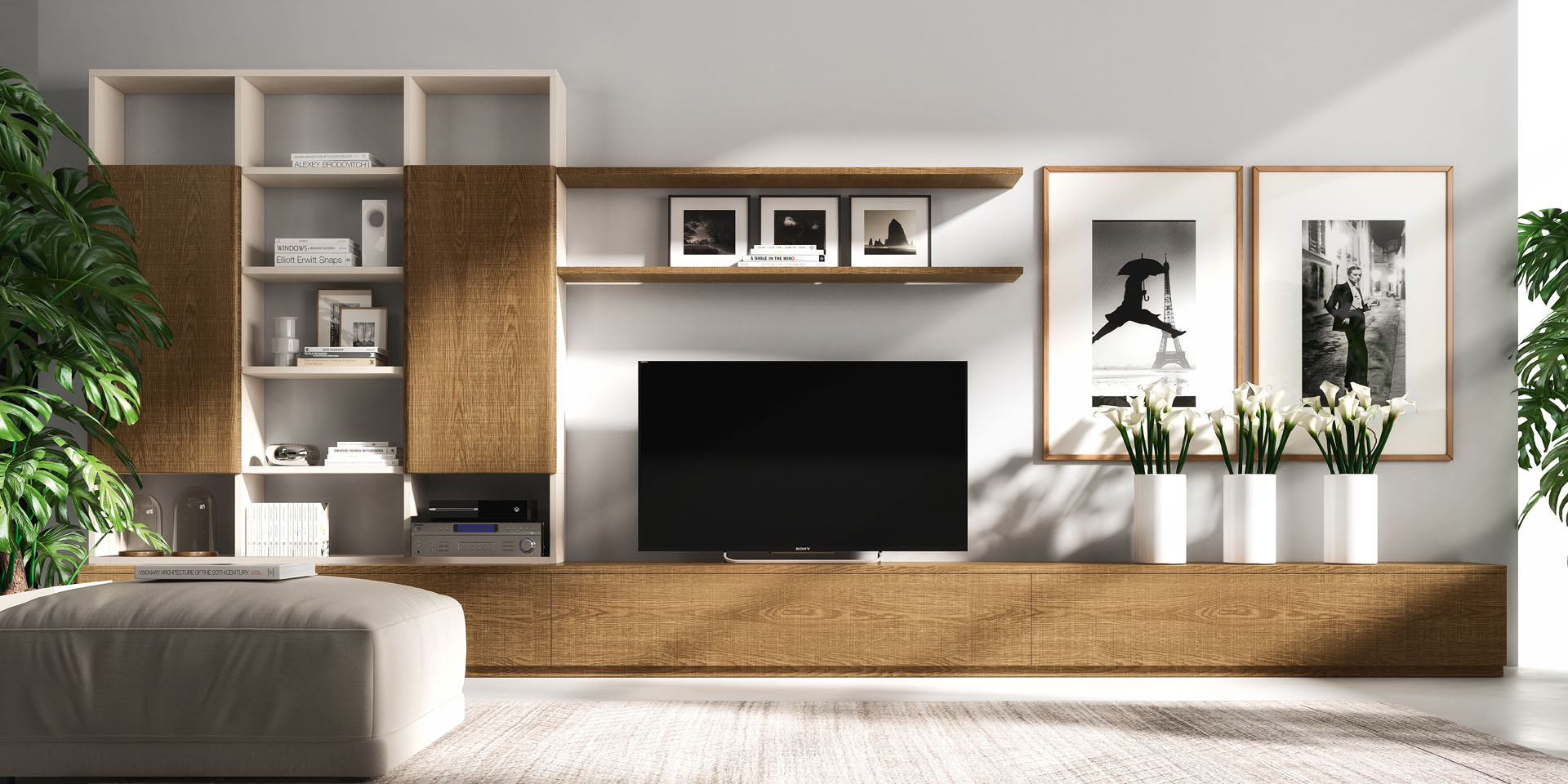 Organisez votre salon avec style grâce au modulable Lotus Flowers. Système qui peut être conçu sur mesure jusque dans les moindres détails qui permet de créer un meuble toujours nouveau et unique.