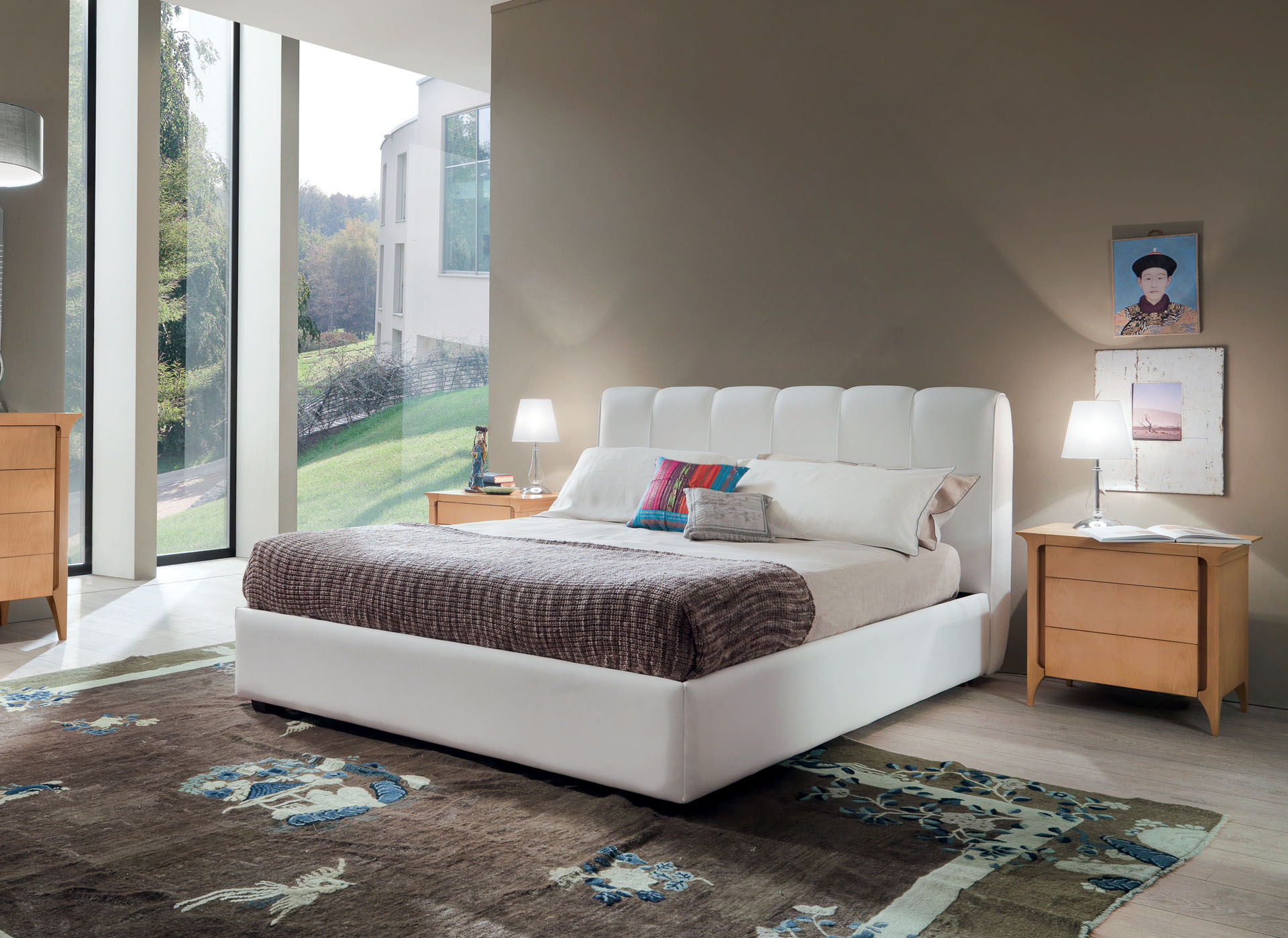 Des formes rigoureuses en contraste harmonieux avec le riche rembourrage qui se distingue par la tête de lit matelassée particulière avec des bandes verticales, des éléments qui donnent l’idée de douceur et de confort absolu, et qui peuvent également être utilisés comme appuie-tête confortables. Le lit entièrement recouvert à la fois dans la tête de lit et dans le cadre du lit, a différentes finitions pour le rembourrage, des détails qui donnent à la structure un caractère personnalisé selon vos goûts.