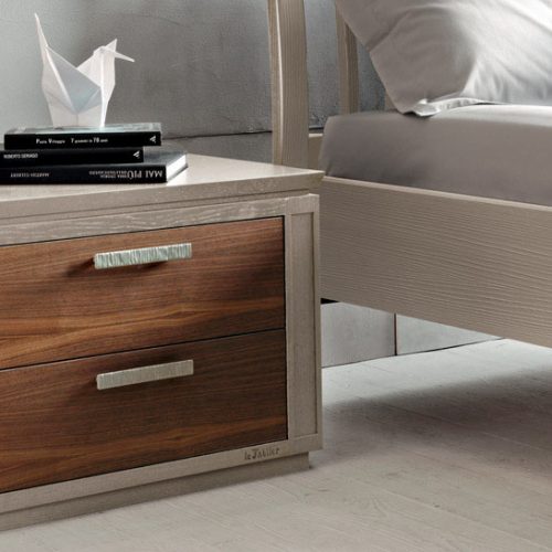 La possibilité de créer la table de chevet ou tout en bois ou dans une finition bicolore rend toute pièce unique et artisanale, où la poésie du chêne se conjugue avec l’élégance de la laque, ou avec des détails tranchè.